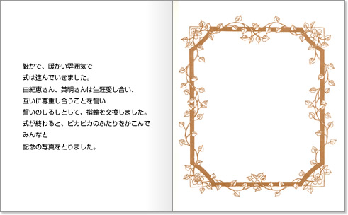 | 人生最大のイベント結婚式。幸せいっぱい二人の愛の物語が、世界でたった一つの本になります。 お気に入りの写真を入れてオリジナルのアルバムとしてご利用ください。 |