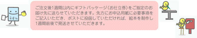 | 絵本の内容を先方に記入してもらう『ギフトパッケージ』(お仕立券)をプレゼントする場合 | |