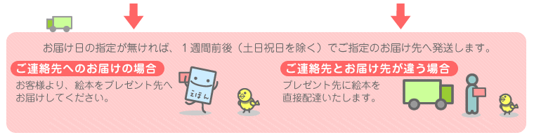 | お客様が絵本を注文し、手渡しまたは配達で先方にプレゼントする場合 | |||||||
