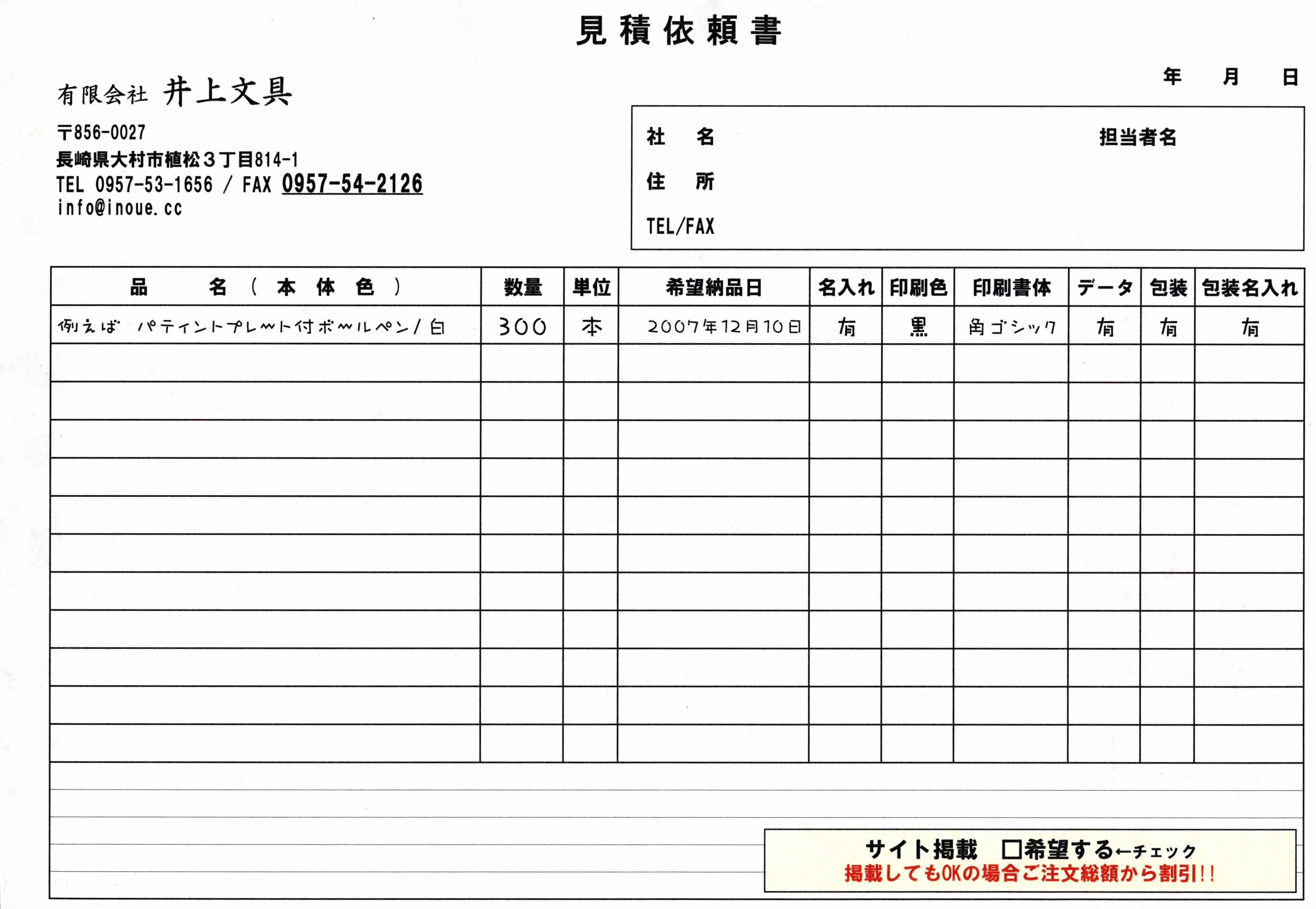 | ←お見積は左画像をクリック! 出力して記入後、FAXをお願い致します。 |